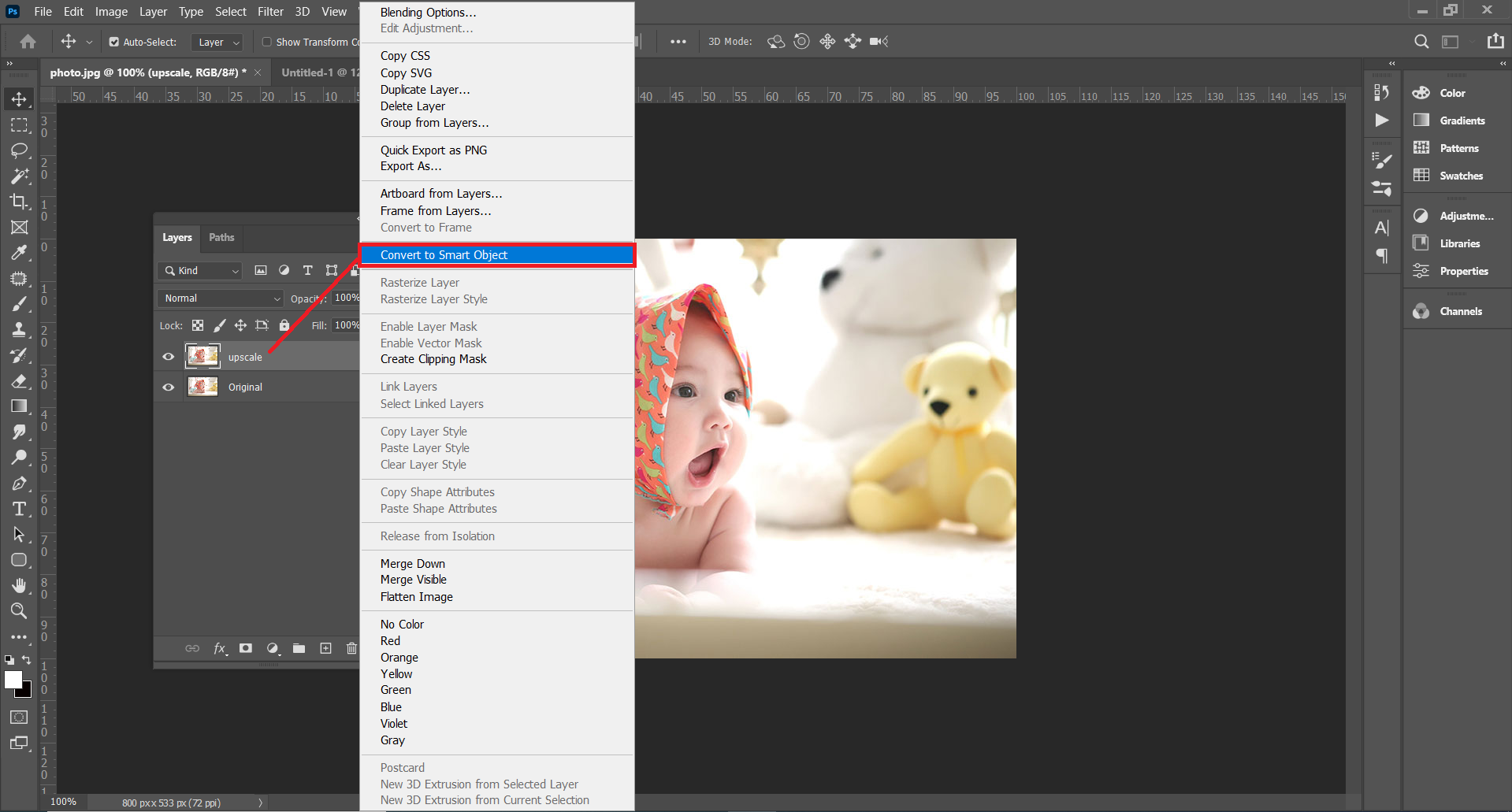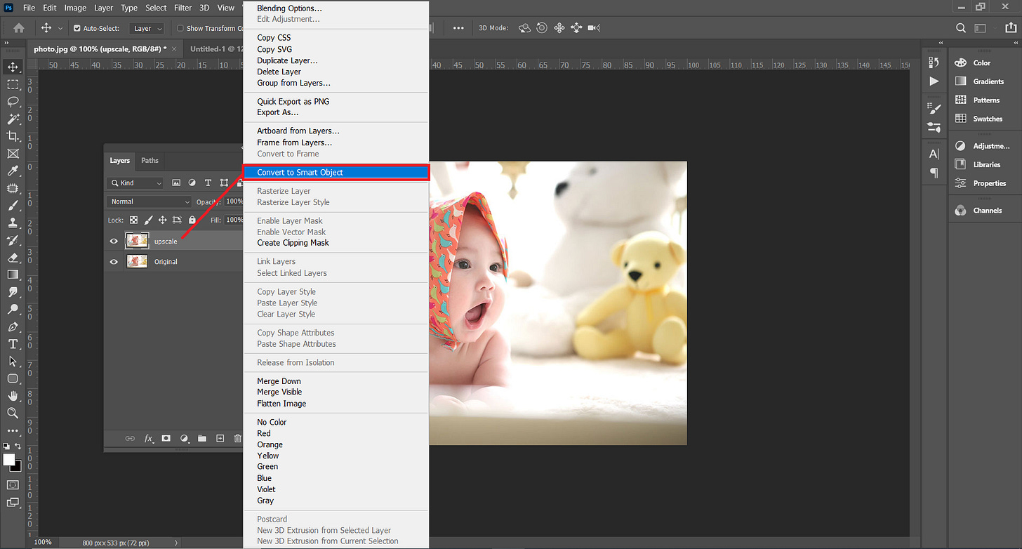The second method involves using smart objects, which provide you with more control when resizing, especially when working with large files.